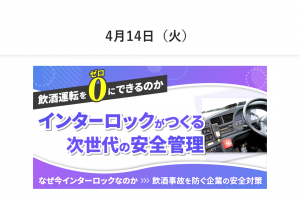 飲酒運転をゼロにできるのか インターロックがつくる次世代の安全管理― なぜ今インターロックなのか飲酒事故を防ぐ企業の安全対策 ―4月14日(火)