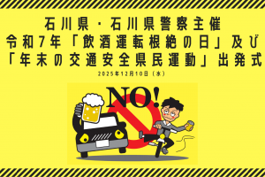 石川県・石川県警察主催「令和7年『飲酒運転根絶の日』及び『年末の交通安全県民運動』出発式」12月10日(水)東海電子CEO杉本が講演