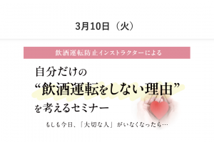 もしも今日、「大切な人」がいなくなったら…自分だけの “飲酒運転をしない理由” を考えるセミナー 3月10日(火)