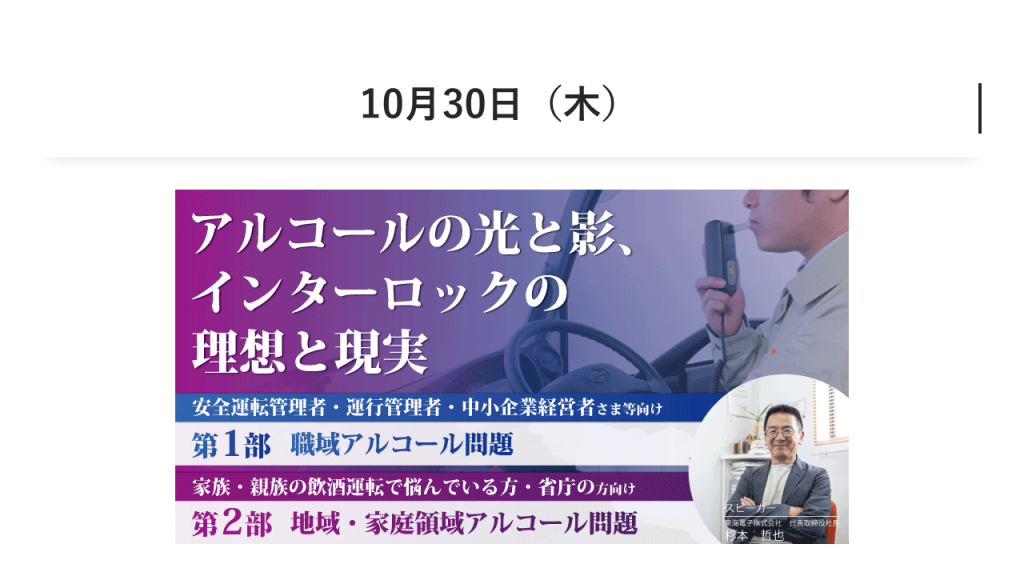 【東海電子CEO登壇】アルコールの光と影、インターロックの理想と現実 10月30日(木)