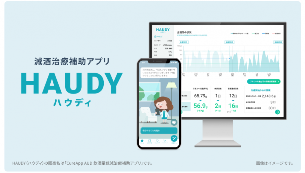 沢井製薬株式会社(本社:大阪市))が、先日、株式会社CureApp(本社:東京都中央区)が開発・薬事承認および保険適用を取得※3した減酒(飲酒量を減らすこと)が治療目標となりうる患者さんを対象とした減酒治療補助アプリ「HAUDY(ハウディ)」の販売を2025年9月1日(月)より開始することを公表しました。