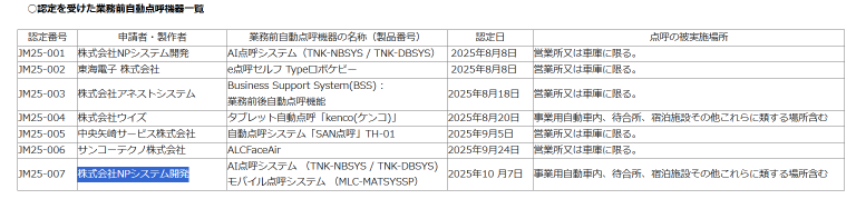 自動点呼を、出先、車両、宿泊地で。持ち運べる自動点呼が出来る認定機器に、NPシステム開発さまのモバイル点呼システムが追加~! 「業務前自動点呼 いわゆる出先対応」認定機器は2機種に。