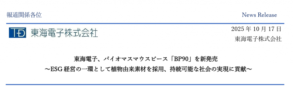 アルコール検知システム、点呼システム、運行管理システム、安全運転管理システムを開発・販売する東海電子株式会社(本社:静岡県富士市 代表取締役 杉本哲也)は、この度、ESG経営の一環として環境負荷の低減を目指し、植物由来のバイオマス材料を使用したバイオマスマウスピース「BP90」を2025 年11月より出荷開始いたします。
