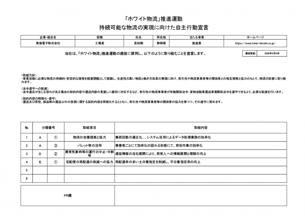 その思いを形にするために、2024年4月、「ホワイト物流」推進運動へ正式に参画しました。