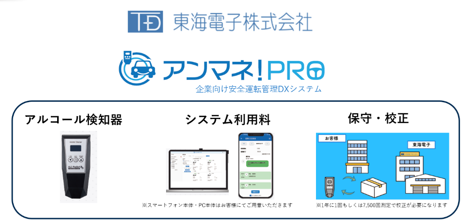 東海電子はこれまで、主に緑ナンバー事業者向けのシステムや、アルコール検知器単体での提供を行ってきたため、アンマネ!PROは後発として登場した製品です。