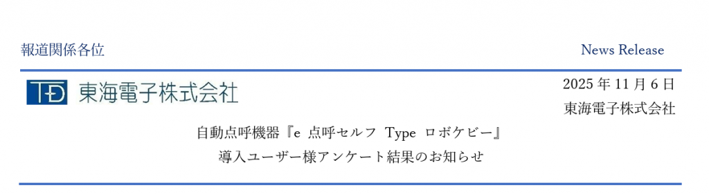 アルコール検知システム、自動点呼システム、遠隔点呼システム、運行管理システムを開発・販売する東海電子株式会社(本社:静岡県富士市 代表取締役 杉本哲也)は、このたび、当社自動点呼機器『e 点呼セルフ Type ロボケビー』導入ユーザー様を対象に、運用状況およびご利用満足度に関するアンケートを実施いたしましたので、その結果をお知らせ致します。