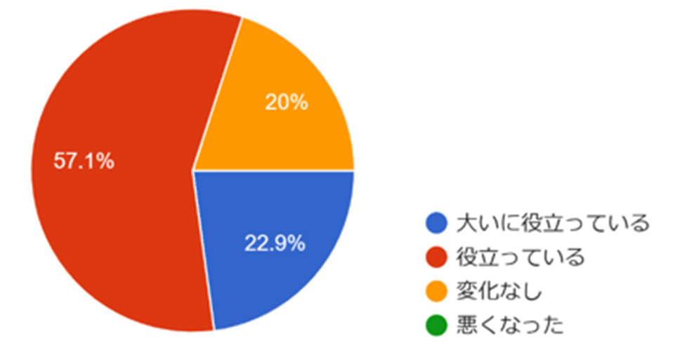 80%のユーザー様が自動点呼を安全管理の強化に役立っているとの回答が多い結果となりました。一方で、ドライバーの負担軽減や心理的安心感の面では、変化なしとの回答も見られました。引き続き安全管理の更なる強化とドライバーの負担軽減を実現するシステムづくりに取り組んで参ります。