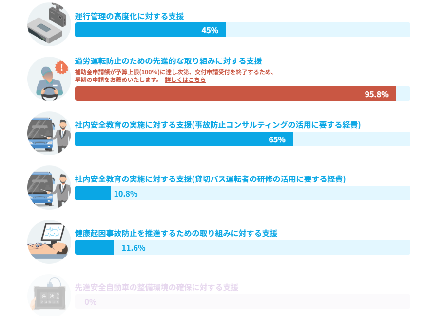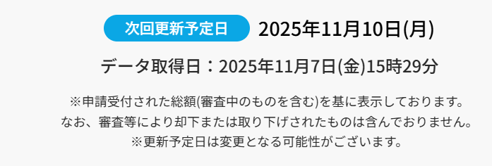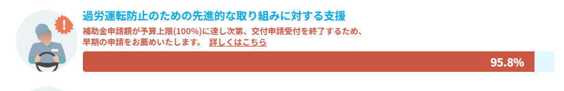 令和7年度、被害者保護増進等事業費補助金(過労運転防止のための先進的な取り組みに対する支援、のなかに自動手の補助金制度がある)の、11月7日時点の状況です↓。
