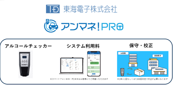 アンマネ!PROは、アルコール検知器メーカーである東海電子が開発した、白ナンバー事業者向け安全運転管理DXシステムです。