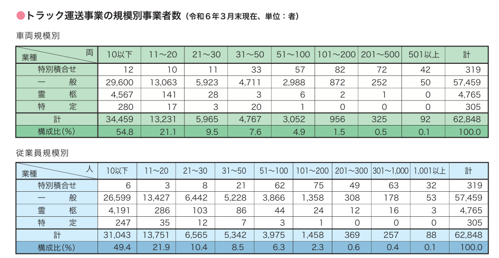30両以下のトラック事業者が85%を占めています。