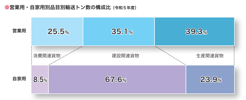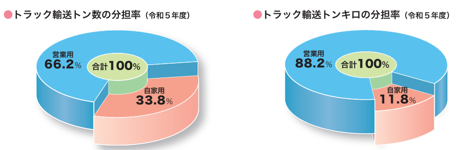 ただし、実際、「輸送」をしている稼働車両や距離は、圧倒的に緑ナンバートラックです。