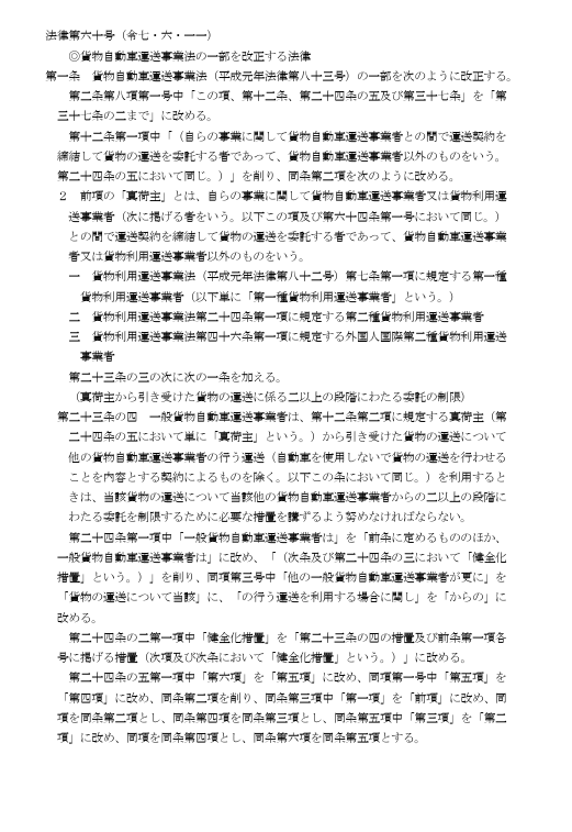 改正貨物自動車運送事業法 法第60号 令和7年6月1日