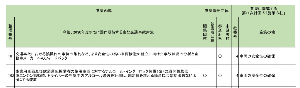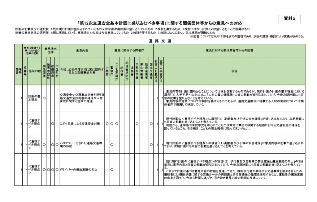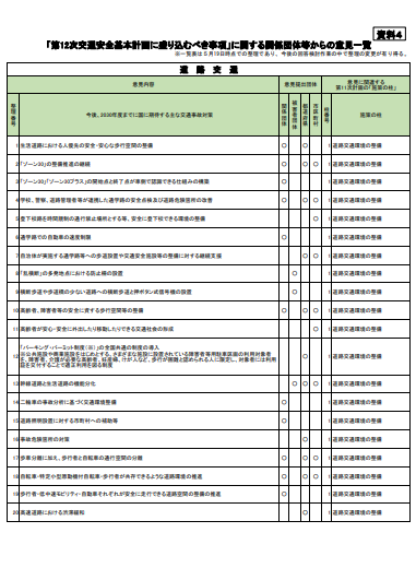 「第12次交通安全基本計画に盛り込むべき事項」に関する関係団体等からの意見一覧
