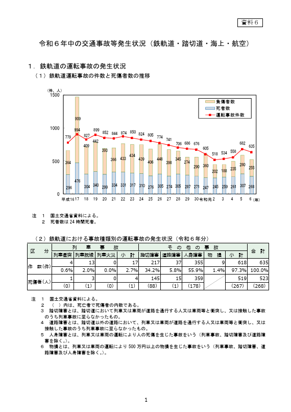 交通事故について、道路交通事故による死者数は着実に減少してきてはいるものの、未だに死者数は2,500人以上に上る。鉄道交通の運転事故件数は、 長期的には減少傾向にあ るものの 、第11次交通安全基本計画期間においては増 加