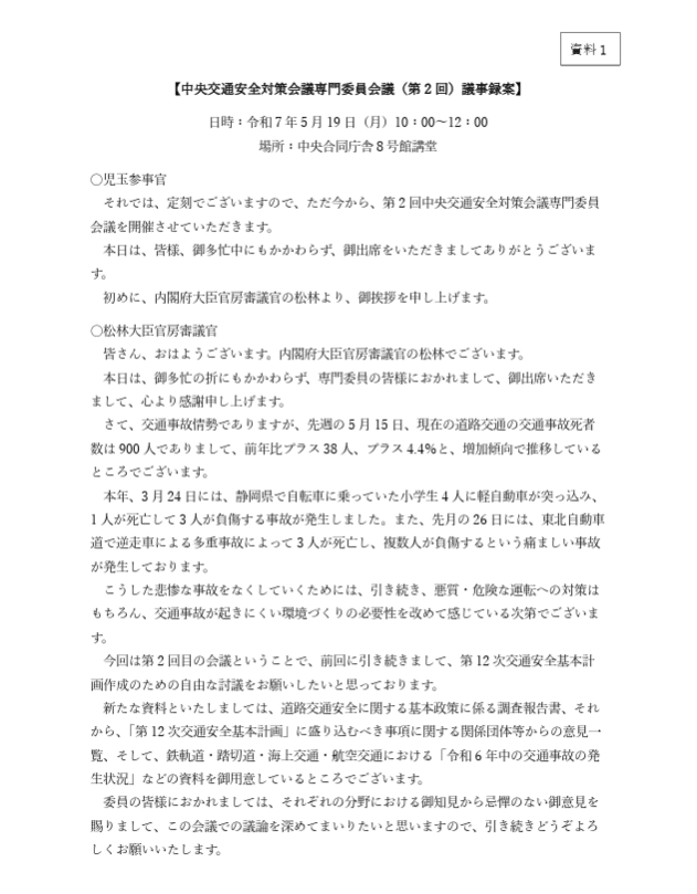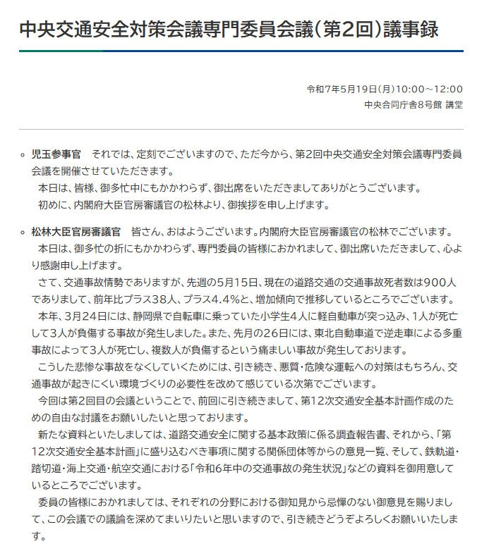 第12次交通安全基本計画 専門家会議 第2回(5月)