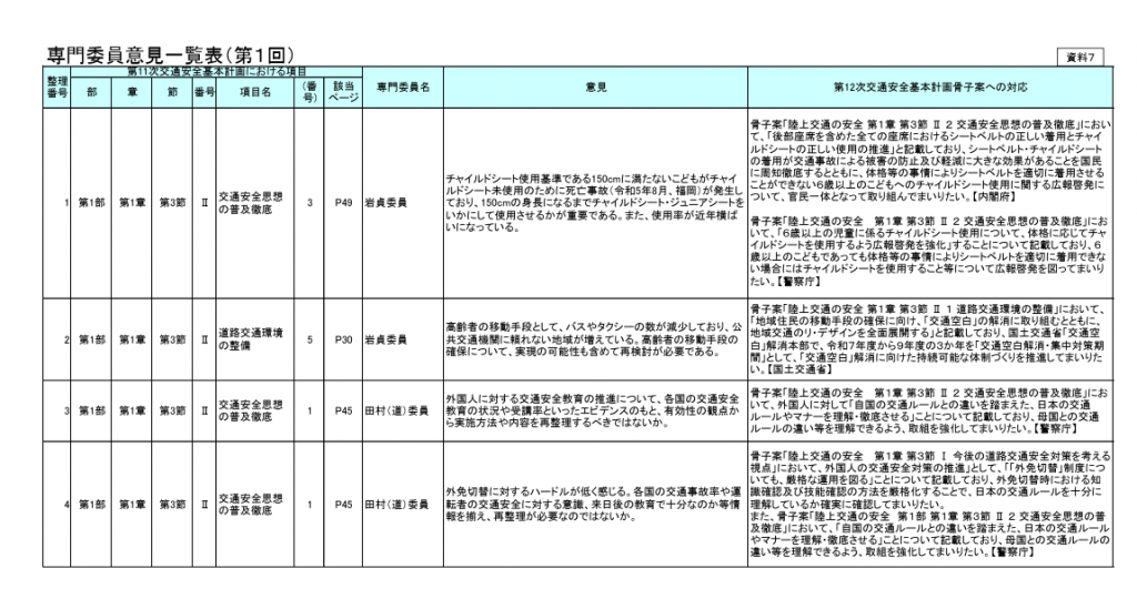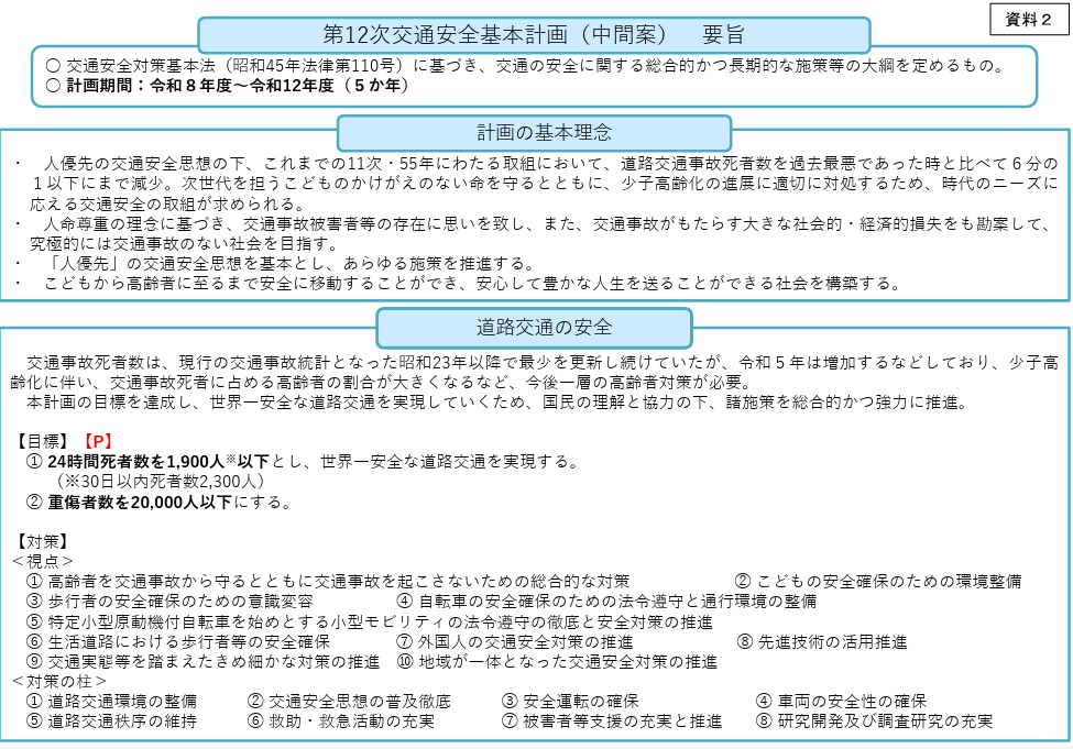 来年度からのR8~R12「第12次交通安全計画」の準備が行われています。
