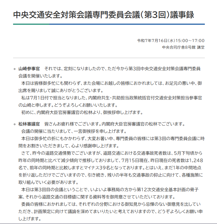 第12次交通安全基本計画 専門家会議 第3回(7月)