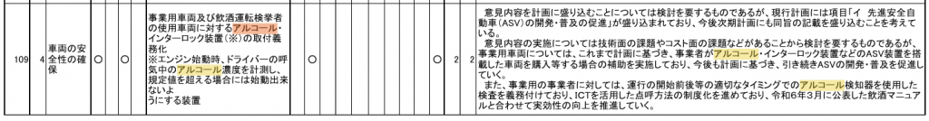 これはこれでやるべきことで正しいのですが、資料4で言及されていたアルコールインターロックについて、ここでは触れてない・・。