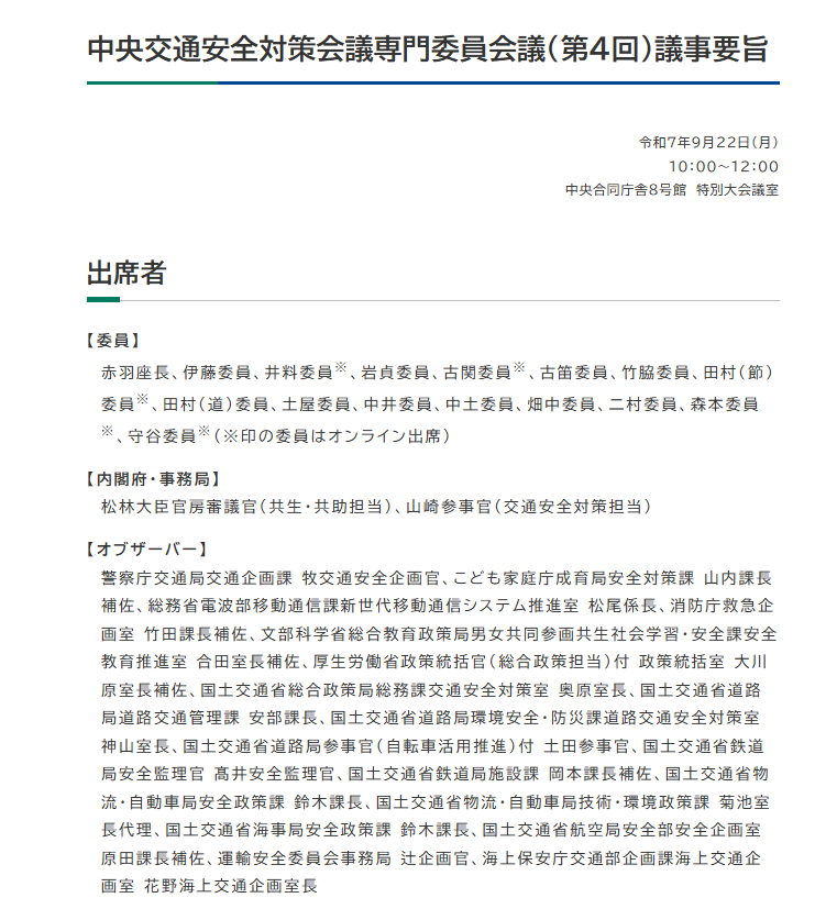 第12次交通安全基本計画 専門家会議 第4回(9月)