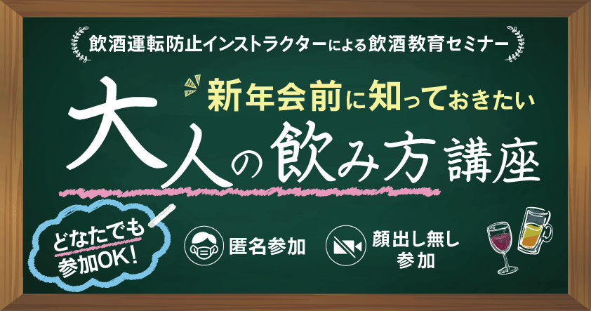 飲酒運転防止インストラクターによる飲酒教育セミナー どなたでも参加OK!新年会前に知っておきたい“大人の飲み方講座” 1月9日(金)