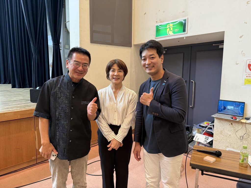 沖縄~♪ ということで、きちんとかりゆしを着て、話をさせていただきました。