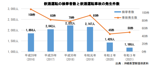 沖縄においては近年飲酒運転は減少傾向にある。