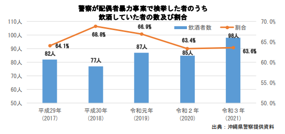 アルコールに関連する暴力事案はこのような状況。