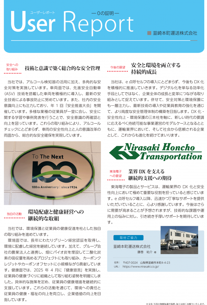 自動点呼、現場でどう活かされている?韮崎本町運送株式会社様のユーザーレポートを公開