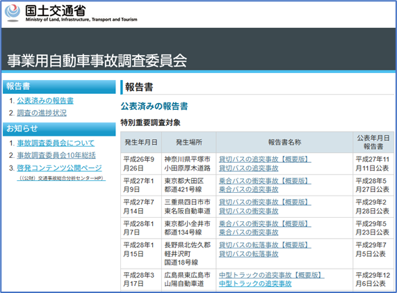 国土交通省の事業用自動車事故調査委員会は、社会的影響の大きい事業用自動車の重大事故について、事故原因の究明と再発防止策の提言を目的とした事故調査報告書を公表しています。しかしながら、本調査には、実際その後刑事裁判で明らかになる動機や状況証拠等の事実認定、真の原因、責任の所在等が含まれていません。