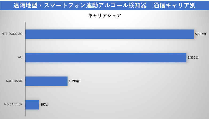 アルコール検知システム、自動点呼システム、運行管理システム、安全運転管理システム、労働安全衛生システムを開発・販売する東海電子株式会社(本社:静岡県富士市 代表取締役:杉本 哲也)は、この度、遠隔地型(スマートフォン連動型)アルコール検知器の最新実績及び通信キャリア別・端末別スマートフォンの使用状況を取りまとめましたのでお知らせ致します。