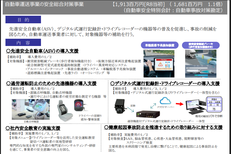 | 過労運転防止機器の導入支援 | 補助金支給結果 XX億 |